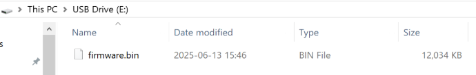 Copiez les deux fichiers ".bin" de mise à niveau que vous venez de télécharger et collez-les dans le répertoire racine du MeiboVue ("USB Drive"). Assurez-vous d'avoir bien les fichiers de votre version.